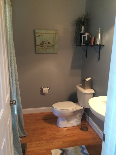 The downstairs bath. We decided to paint this bathroom the same color as the Master Bedroom because we had just enough paint left over to do it, and I love that it's just a shade or two darker than the main living area.